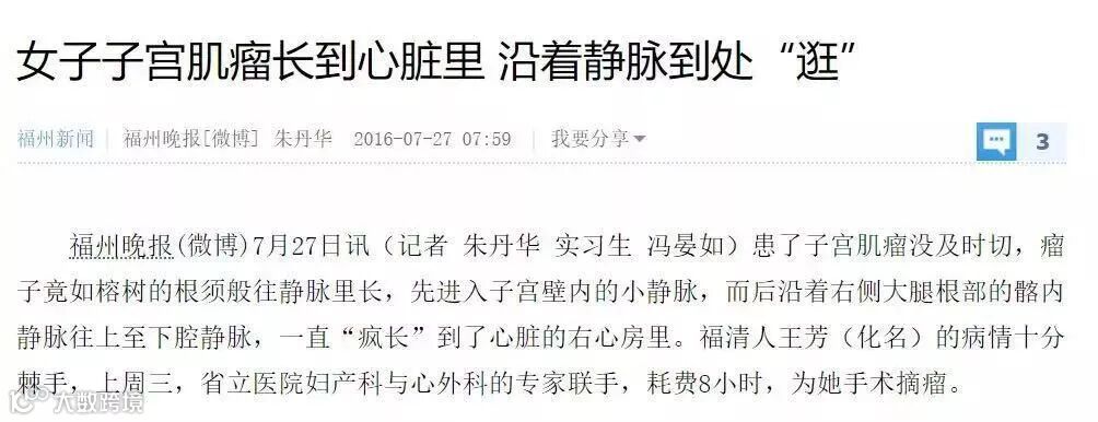 曾经就有新闻报道过,因为长子宫肌瘤不重视,最后瘤子长到心脏的事件。