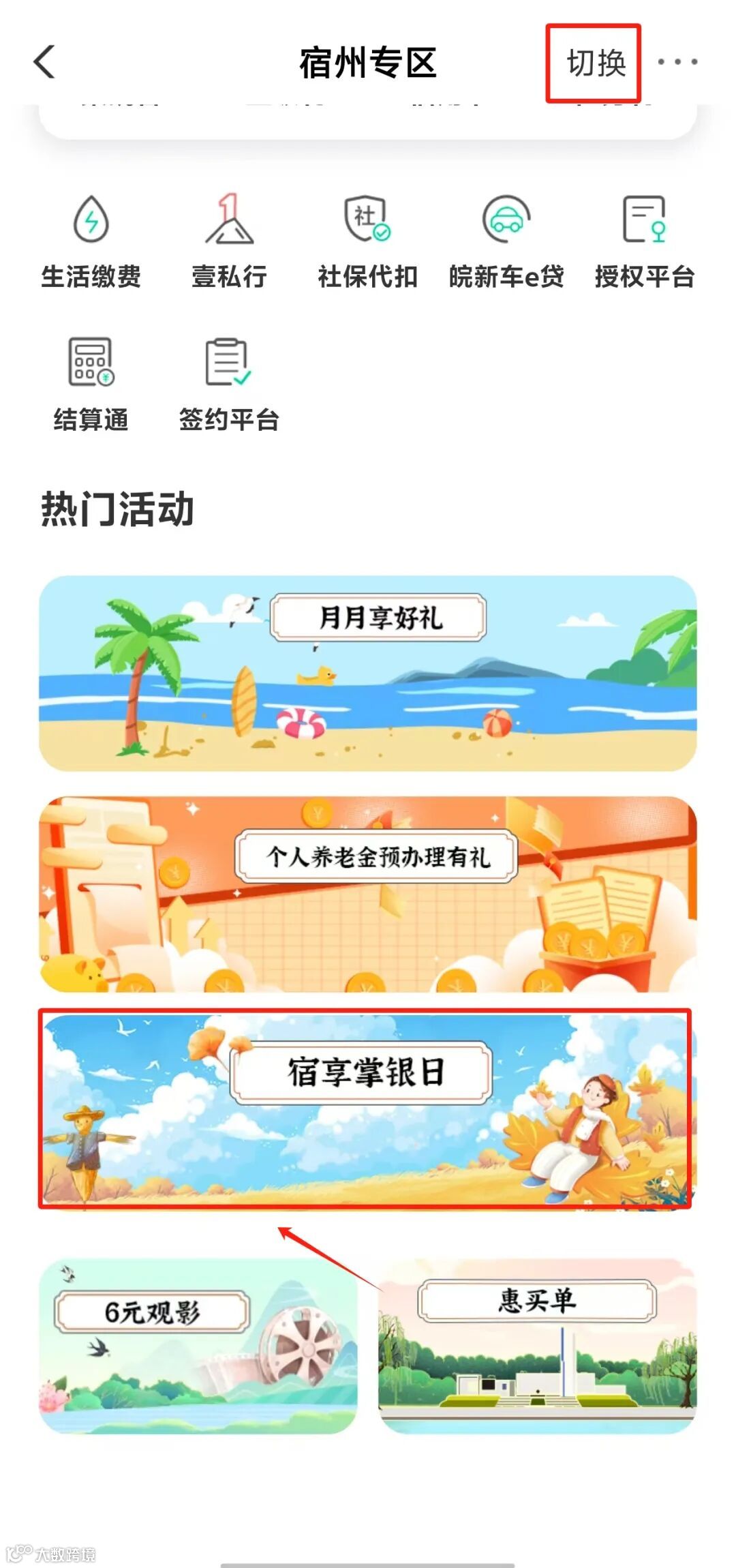 活动期间,客户每月登录农行掌银APP,进入“城市专区”,将城市定位于宿州市,点击参与“宿享掌银日”活动,有机会抽取清风金装抽纸、10元京东e卡、10元美团外卖券、樊登讲书14天VIP、网易严选会员Pro纯享月卡。每期活动奖品有限,先抽先得,抽完即止。
