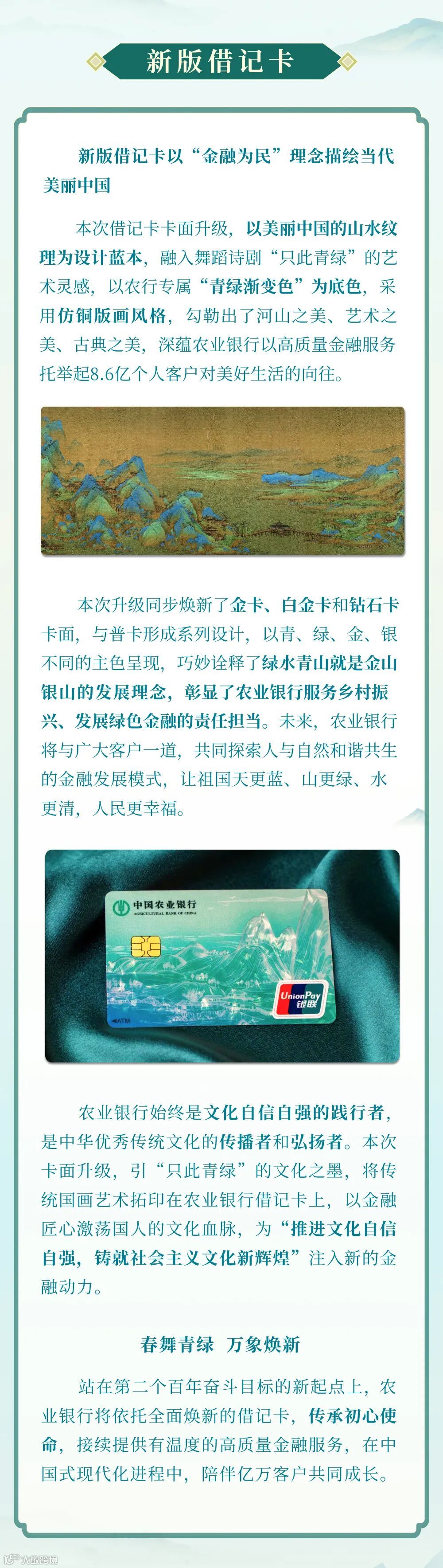 【重磅升级】春舞青绿 万象焕新:中国农业银行借记卡焕新启航