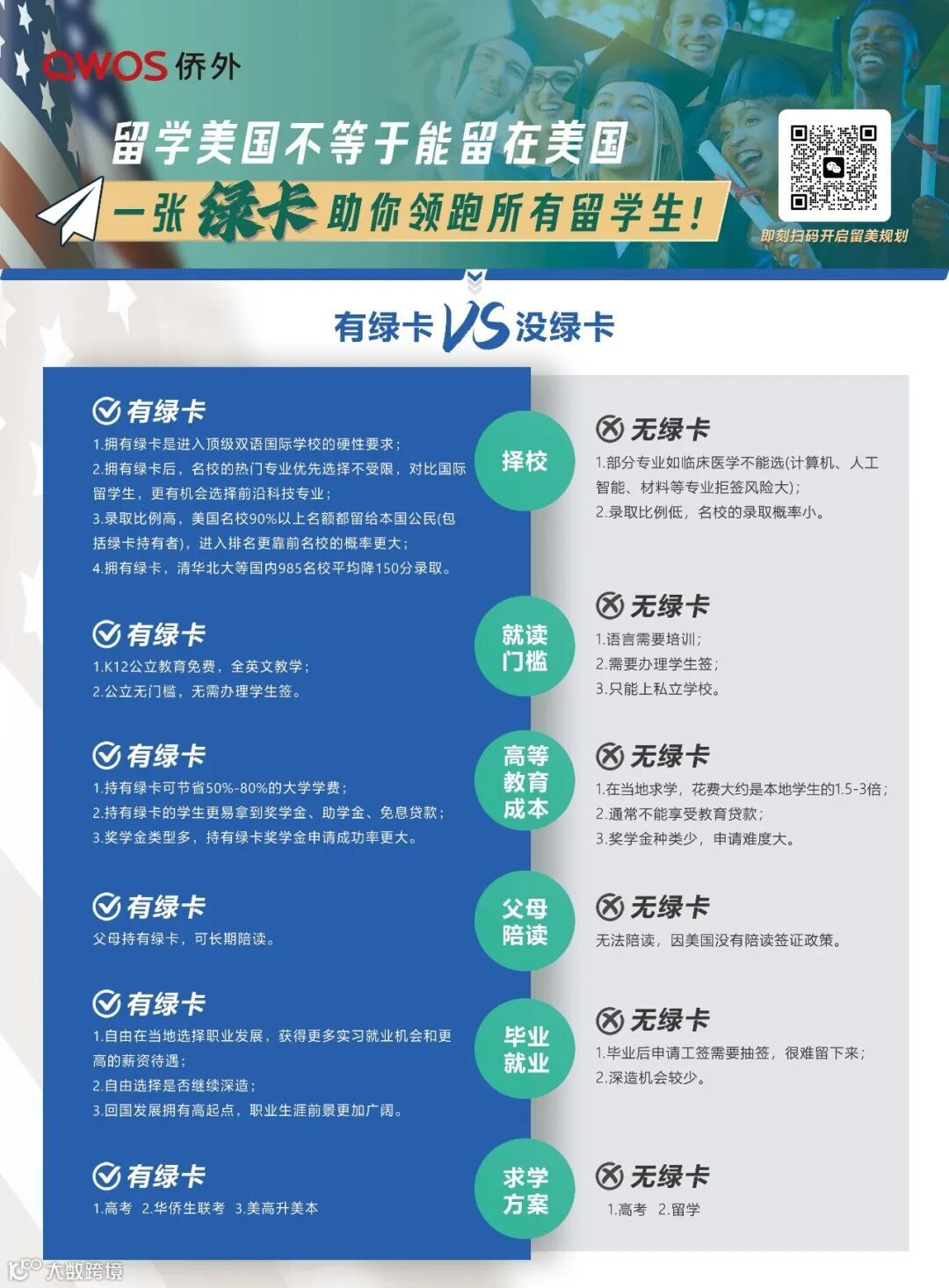 因此,对那些真正计划长期留美、志在顶尖教育的家庭而言,应抓紧时间完成美国身份规划,让子女尽早手握绿卡。