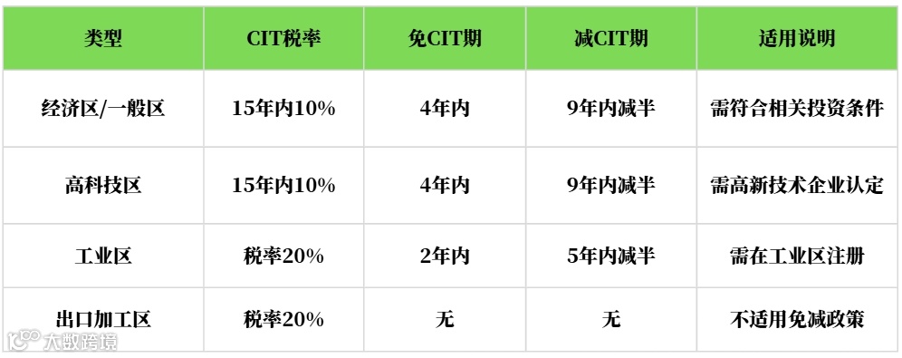 越南政府为吸引外资,针对经济区、高科技区、工业区等推出了多种税收优惠: