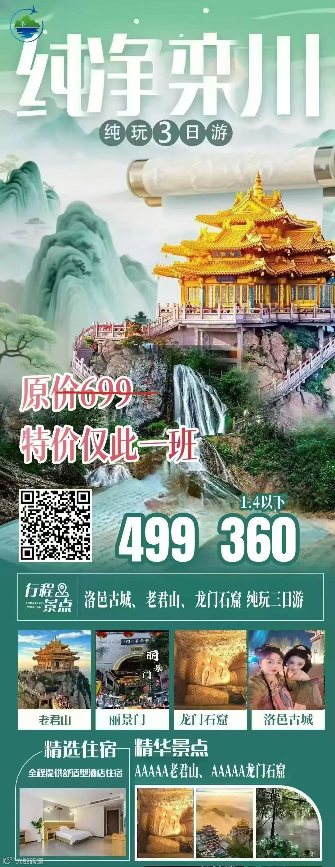 老君山/龙门石窟/洛邑/丽景门纯玩三日游