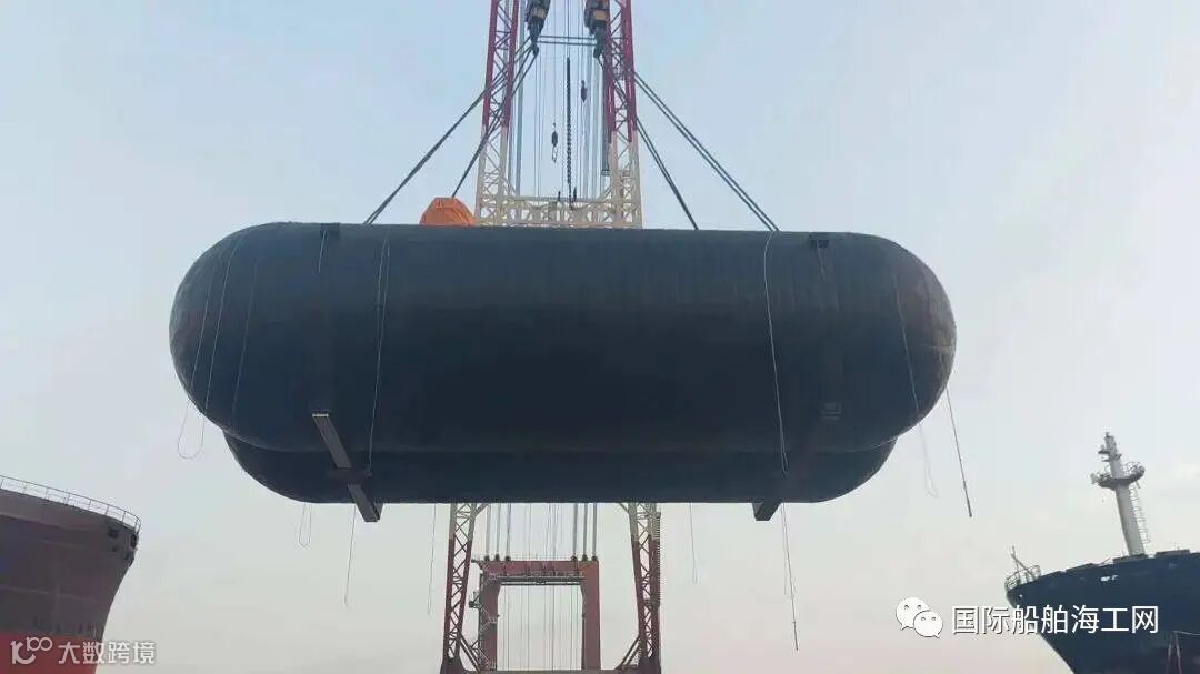 更大、更重的液罐,意味着更高的吊装难度。在吊装位于船艏位置的1号罐时,其不规则的形状使其重心位置有所偏移,对此项目团队早有准备,经过缜密设计、精确计算,得出设计钩差为798毫米,该数据与实际上船后的结果分毫不差,1号罐得以顺利安装,其吊装方案也在事后申请了专利。在吊装2号罐时,为确保液罐重量的准确性,项目团队经过多次计算和两次称重复核,确认液罐重量满足浮吊极限重量1600吨的限制要求。但在实际吊装过程中,出现浮吊显示既定重量但无法脱钩的问题,项目团队坚持“用工程的方法可以解决工程的问题”,通过吃水计算浮力,最终确认浮吊吨位显示数据失准,从而说服船务公司继续起钩,得以为船“吞”进2号罐。