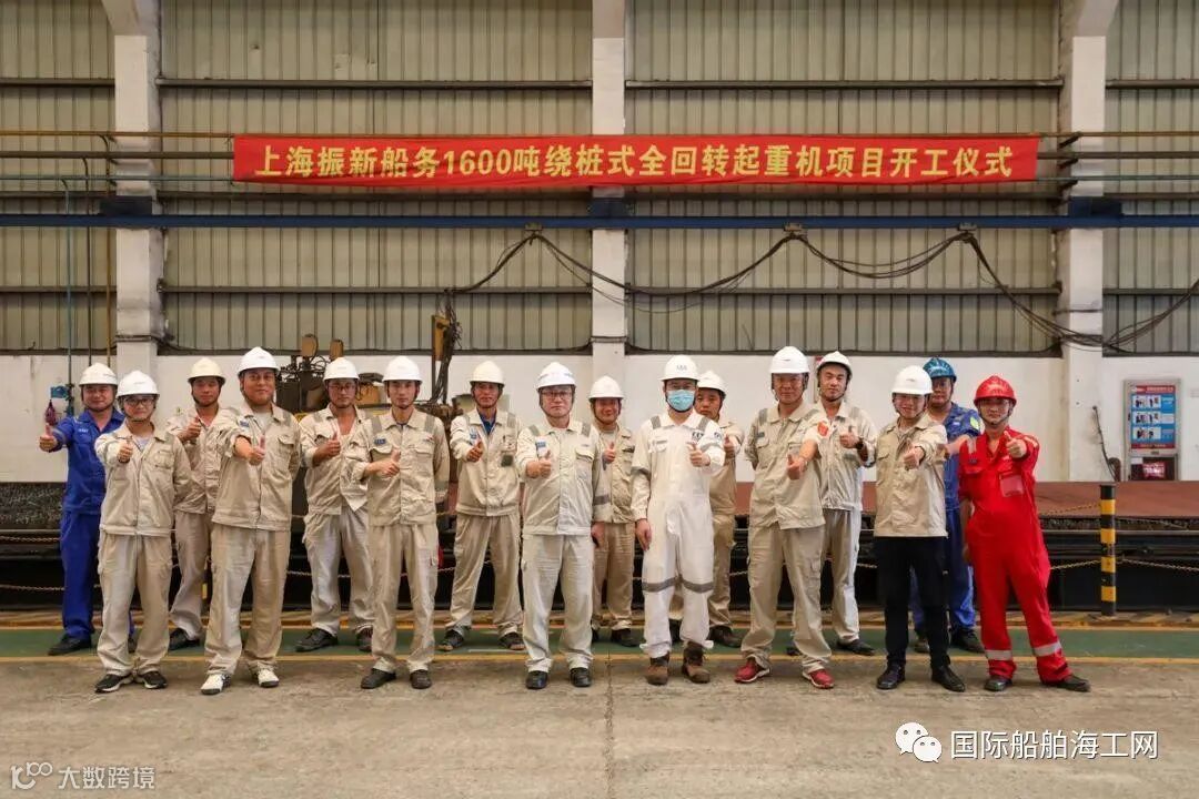 8月18日10点58分,由振华重工承建的上海振新船务1600吨绕桩式全回转起重机项目点火开工。