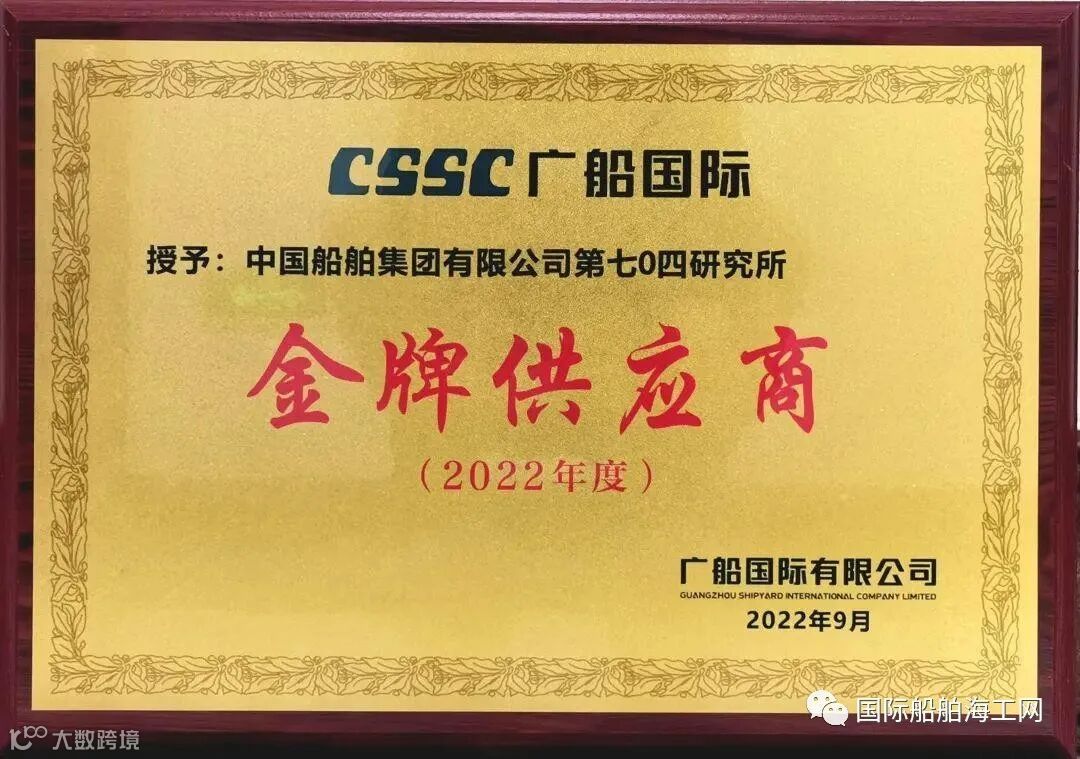 9月28日,中国船舶集团七〇四所凭借自身综合实力、优质的产品和良好的服务,荣获广船国际“金牌供应商”称号,副所长孙玉祥应邀出席大会并做交流发言,代表七〇四所上台领奖。