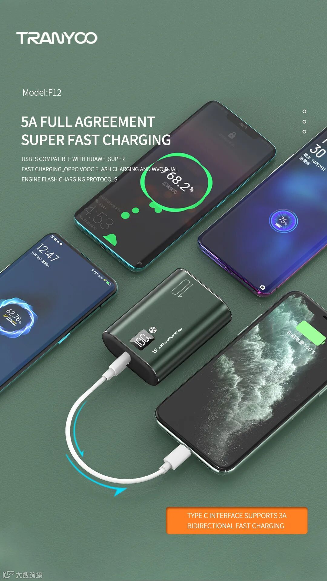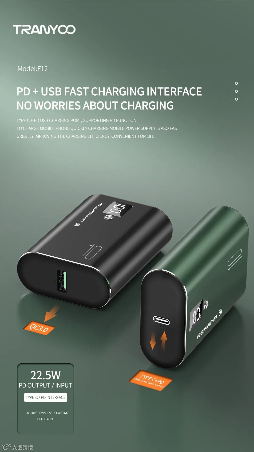 1.PD18W+22.5W, TYPE C+PD USB dual fast charging interface, compatible with all fast charging protocols