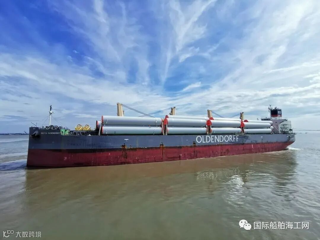 7月22日12点18分,“进通”轮满载中国船舶集团旗下中船澄西船舶修造有限公司为GE公司建造的摩洛哥项目65根风塔缓缓驶离7号泊位顺利起航,这标志着从7月1日至22日,中船澄西2艘国际航行船舶26套130根风塔装船专班发运管理圆满结束。中船澄西坚持严格落实疫情防控主体责任,把好每一道关口,筑牢每一条防线,全力保障生产经营与疫情防控大局稳定。