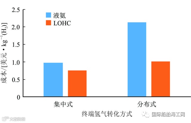 图2 | 液氨与LOHC终端氢气转化成本图