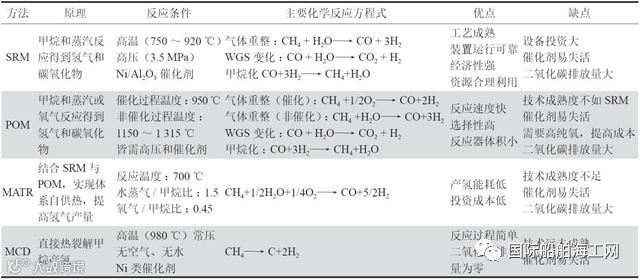 甲烷(CH4)作为天然气的主要成分,在所有碳氢化合物中具有最高的氢元素占比。因此以天然气为原料的甲烷制氢方法具有高制氢效率、最低的碳排放量、适用于大规模工业产氢等优点。甲烷制氢技术主要包括蒸汽重整法(SRM)、部分氧化法(POM)、自热重整法(MATR)、催化裂解法(MCD)。