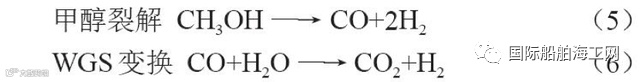 反应热力学和反应机理的研究结果证实,该反应是通过甲醇裂解与WGS变换两步反应完成的: