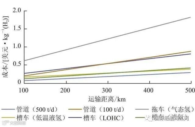 图1 | 几种储运技术成本与运输距离关系图