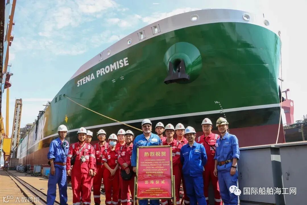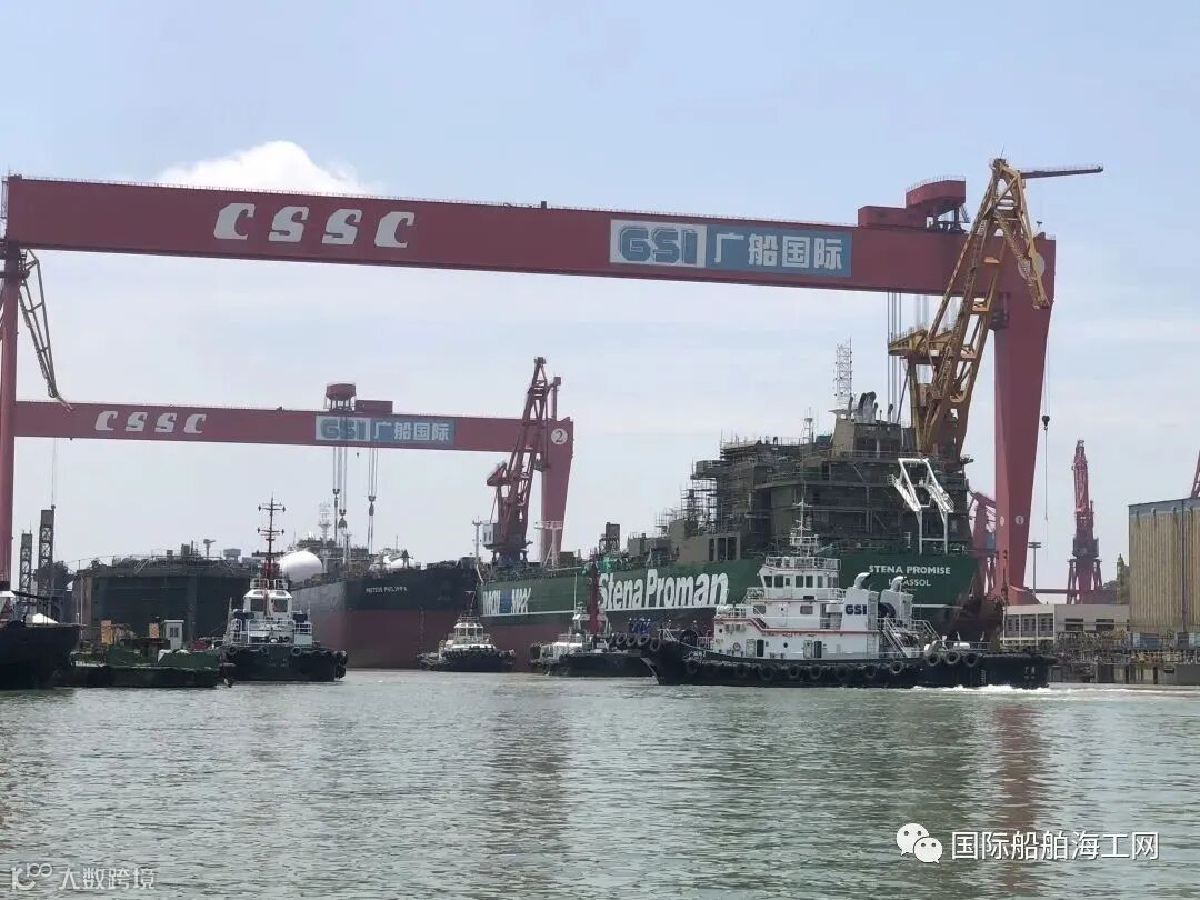 5月6日,由中国船舶集团旗下广船国际为交银租赁建造的11.99万吨LNG双燃料油船3号船和为Stena公司建造的国内首型4.99万吨甲醇双燃料油化船3号船顺利实现出坞,标志着二季度攻坚战“再下一城”。