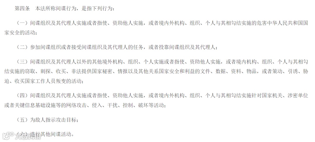 《中华人民共和国反间谍法》第一章第四条