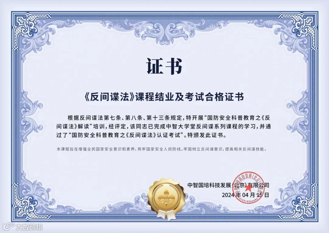 为在新形势下落实总体国家安全观,切实提高央国企员工的安全防范意识,提升安全防范能力,有效加强管理者国家安全防范职责,中智国培紧密结合国家安全政策,持续深化课程研发,依托中智大学堂在线学习平台正式推出国防安全科普教育培训——《反间谍法》解读课程。