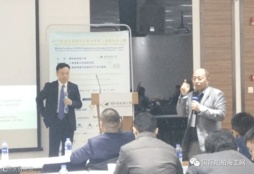 英国船级社江浩经理(左)在国际船舶海工网论坛上披露船舶设备配套高价热点