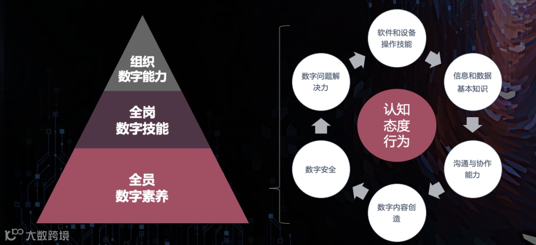 广义上,数字素养体系是整个企业内部员工构建的人的数字化转型能力,它包括了全员的基础数字素养、全岗数字技能、组织通过数字化转型在全员当中的统一数字化转型、流程再造、组织变革等。