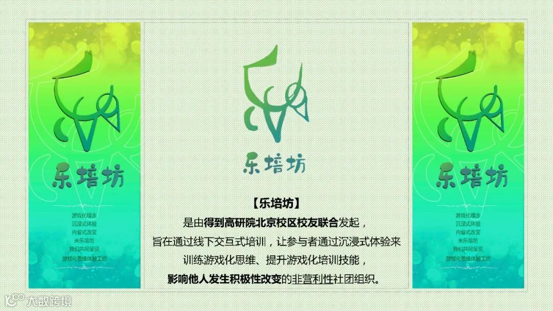 旨在通过线下交互式培训,让参与者通过沉浸式体验来训练游戏化思维、提升游戏化培训技能,影响他人发生积极性改变的非营利性社团组织。