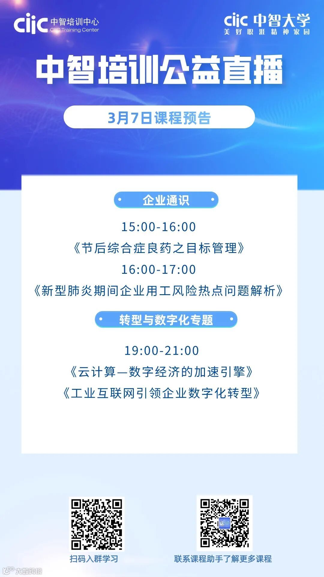 各位爱学习的小伙伴~中智公益直播课堂3月7日的课程预告来了
