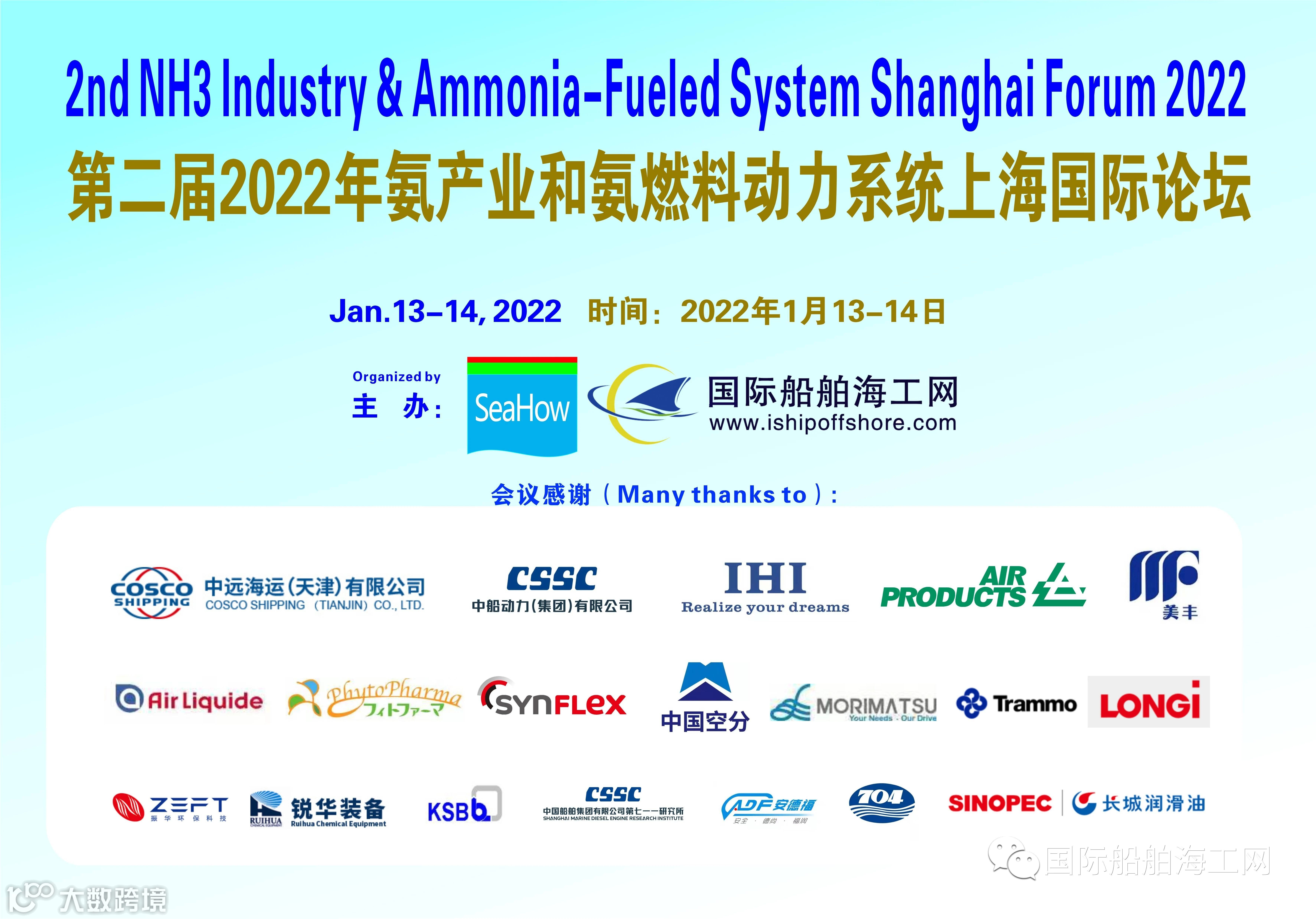 为了更好交流新能源产业发展趋势和机会,在2021年5月26日-28日三天成功举办了首届“2021年氨燃料动力系统产业发展上海国际峰会论坛”的基础上,应国内外产业界的强烈呼吁,“第二届2022年氨产业和氨燃料动力系统上海国际峰会论坛”将于2022年1月13-14日在上海继续举办。咨询报名:china@ishipoffshore.com 或 chinabobli@126.com 会议将广泛邀请国内外的陆地和海上的业主、厂家、投资机构、船东、船厂、研发单位、设备厂商、配套厂家、设计、贸易、服务和投资等单位代表参加,交流、探讨和分享氨产业和氨燃料动力系统在航运、船舶、内燃机、飞机、汽车、市政、电力、工程、港口、物流等行业清洁新能源市场机会发展现状和趋势等。