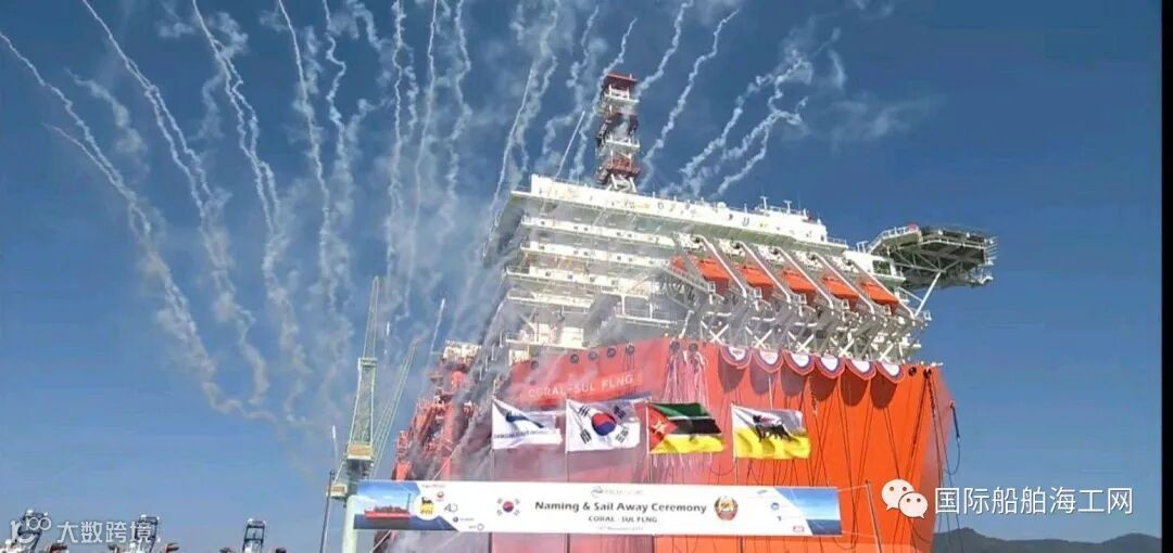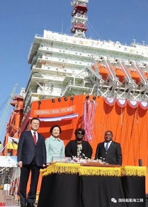 11月15日,韩国总统文在寅伉俪和莫桑比克总统菲利佩·雅辛托·纽西夫妇在庆尚南道巨济市的三星重工造船厂出席韩国国产浮式液化天然气装置(FLNG)命名仪式。这艘FLNG被命名为“Coral-Sul”,船长432米,宽66米,高39米,为世界第二大规模。该船将在莫桑比克生产液化天然气。