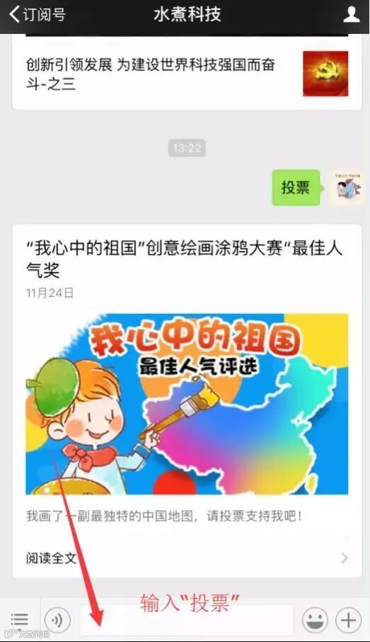 3.投票入口:点击菜单栏或公众号内回复“投票”,就会弹出参加入口。