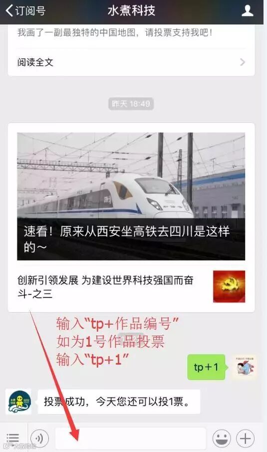 4.快速投票:回复 “tp+编号”就可以直接给该选手投票。