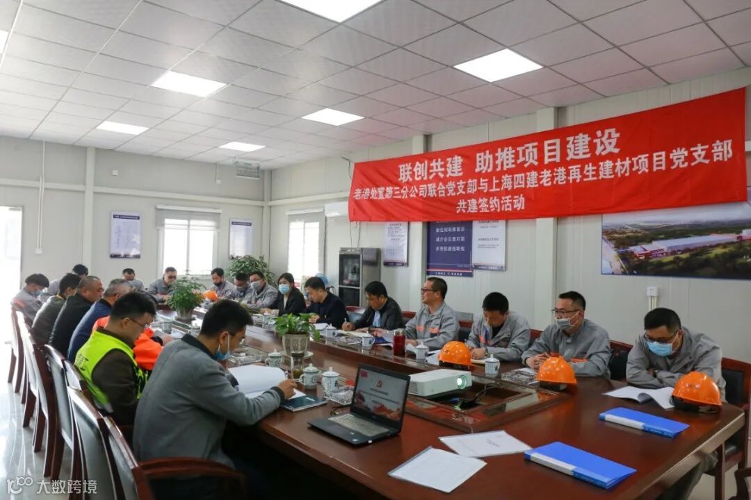 4月13日下午,上海建工四建集团老港再生建材一期项目党支部与上海老港废弃处置有限公司第三分公司联合党支部共建签约活动于项目会议室顺利召开。上海老港废弃物处置有限公司党委书记黄雄,副总经理周德生,上海建工四建集团第一工程公司党总支书记陈宏欣,上海老港废弃物处置有限公司第三分公司联合党支部书记陈卫,上海建工四建集团第一工程公司党总支委员、项目党支部书记、项目经理刘昊及双方党支部全体党员、供应商党员代表出席本次活动。