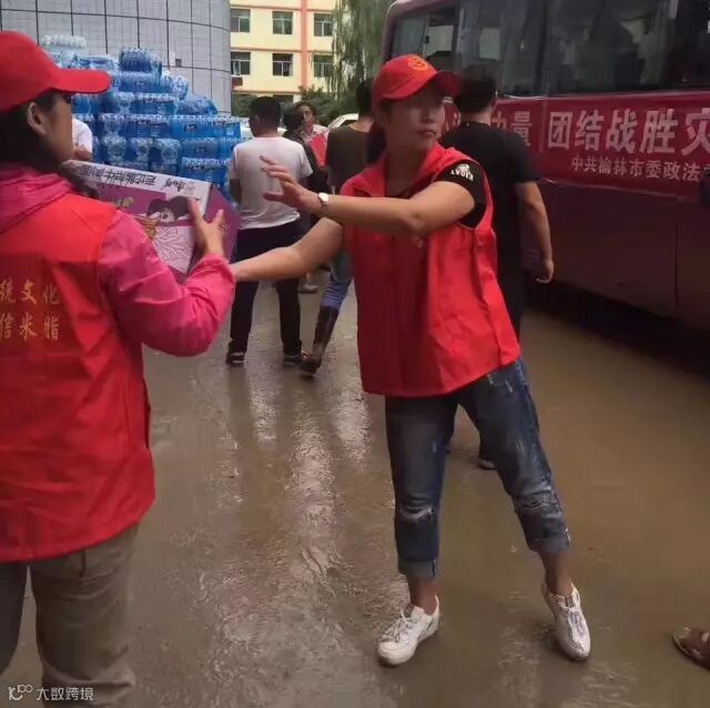 记者们身先士卒投身在救灾一线,米脂报友会的小红帽志愿者队伍在子洲出了名。