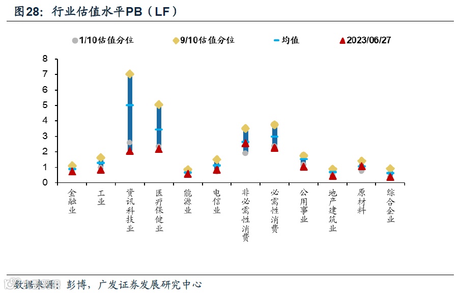 (1)本周(2023.6.26-6.27)大类资产表现:权益>债券>商品。本周COMEX白银领涨(涨2.49%),其次为恒生指数涨1.37%、MSCI发达市场价值涨1.12%、MSCI全球价值涨1.05%、欧元区STOXX50涨0.79%。本周ICE布油领跌(跌1.49%),其次为美元指数跌0.36%、COMEX黄金跌0.33%、COMEX铜跌0.32%、上证指数跌0.26%。