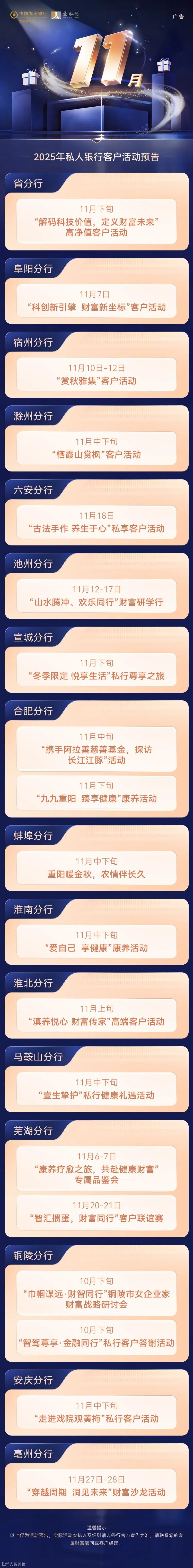 【私银资讯】农行安徽分行11月私人银行客户活动预告