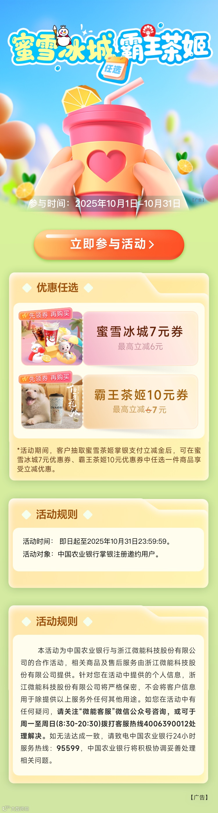 【茶饮优惠】蜜雪茶姬优惠券等您来抽