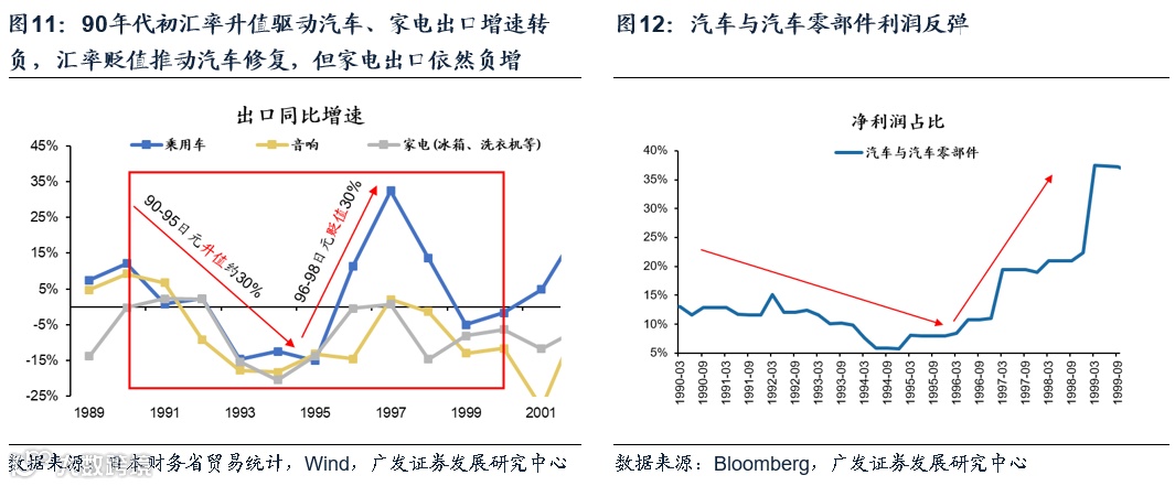 而日本的汽车(轻量型、节能设计)则依靠多年来扎根技术研发而培育的产业竞争力,实现了外需的相对稳定(例如日本汽车在95年之后出口转为回暖并在2000年后重回升势),这些领域能够保持产业产值的相对稳定从而实现股市映射。