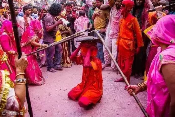 每年夏季,一向地位低下的印度妇女,都有一个扬眉吐气的日子。往常对妻子们横眉怒目的男人们,在这一天都只能用柳条盘子护住自己,任凭竹棒砸落而不能躲闪。这一“奇葩”的节日主要是为了迎接春天到来,参与庆祝的男男女女,会事先在身上撒满彩粉和颜料,男人们也可以用花瓣撒作为回击女人的“武器”。