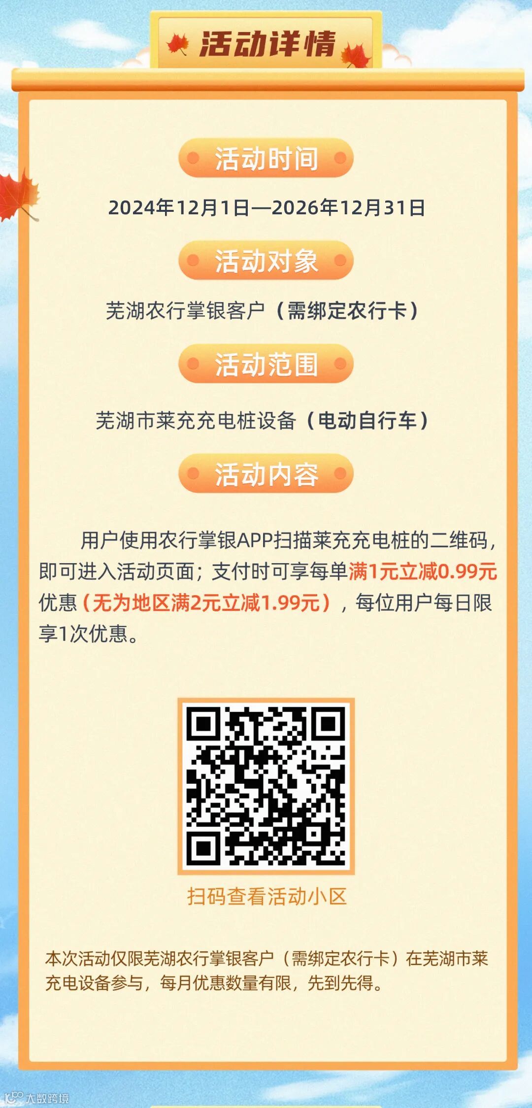 【芜湖专属】莱充充电,掌银扫码低至1分起!