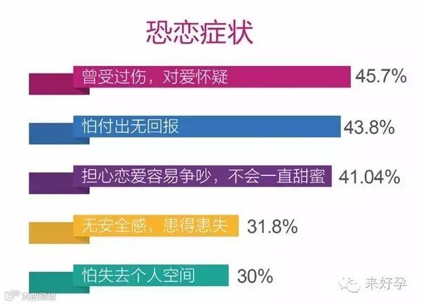 通过这一数据人们会发现,害怕受伤、担心没有回报以及失去爱情是恋爱恐惧症的主要症状。