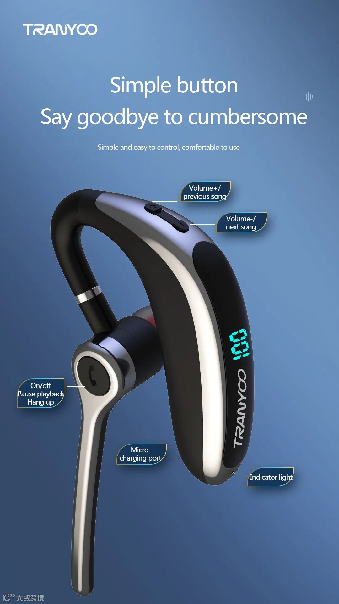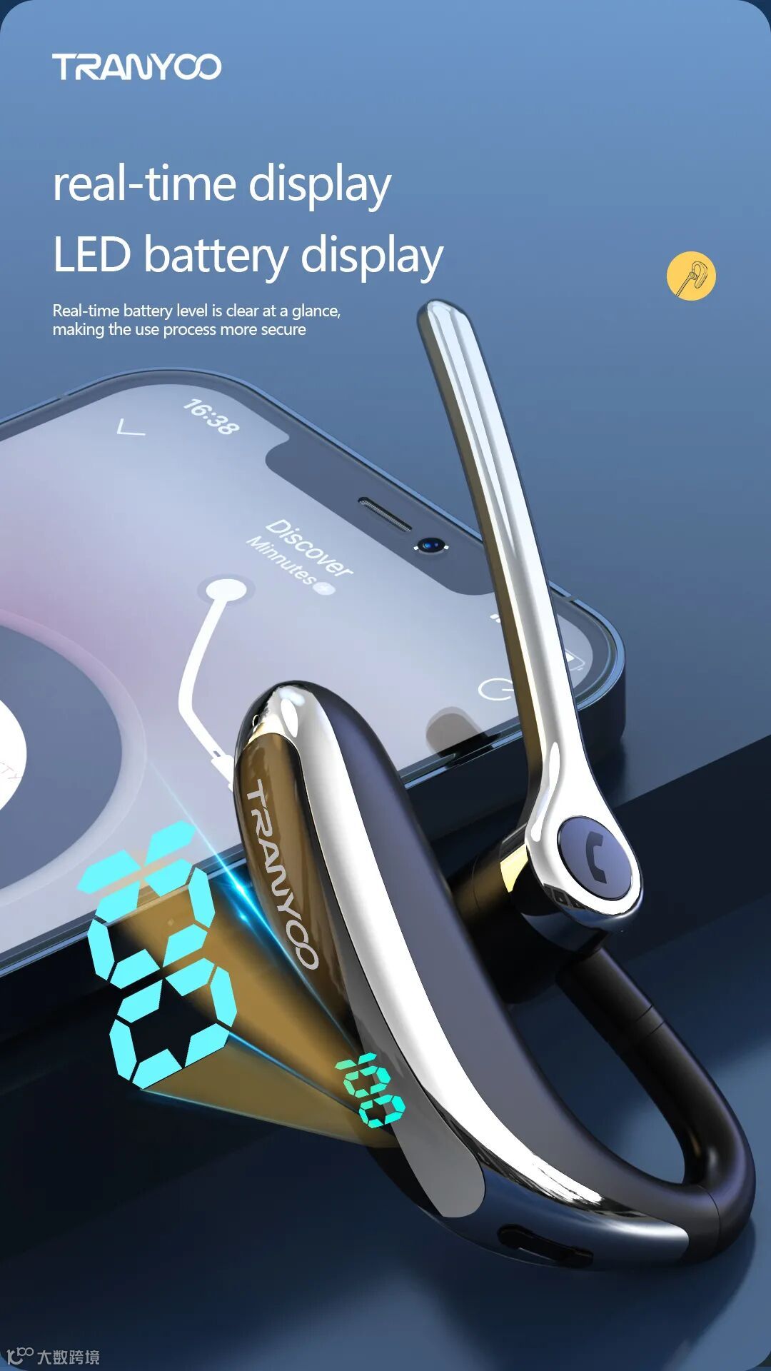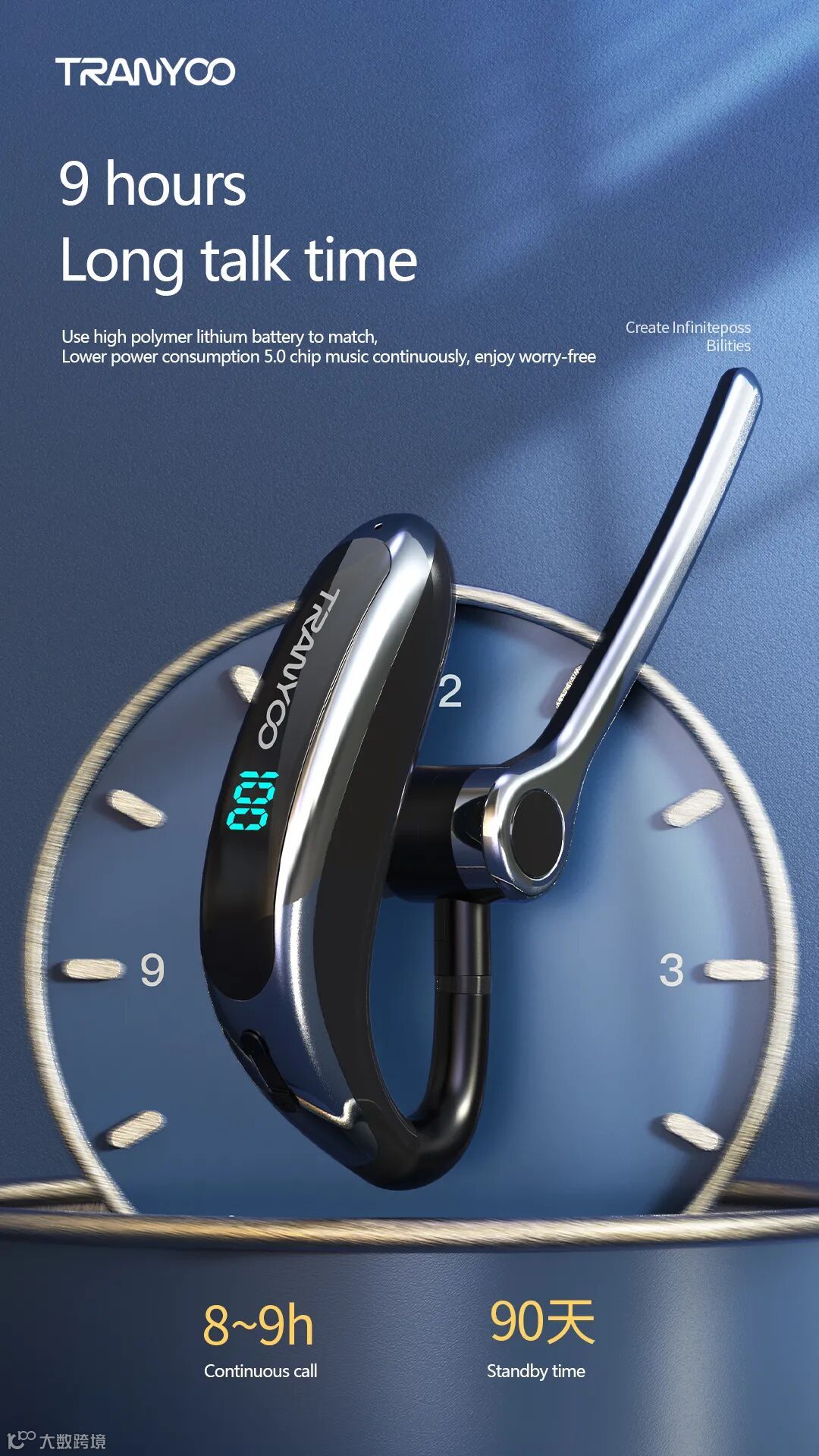 3. Digital display power 9 hours of super long talk time for business Bluetooth headset.