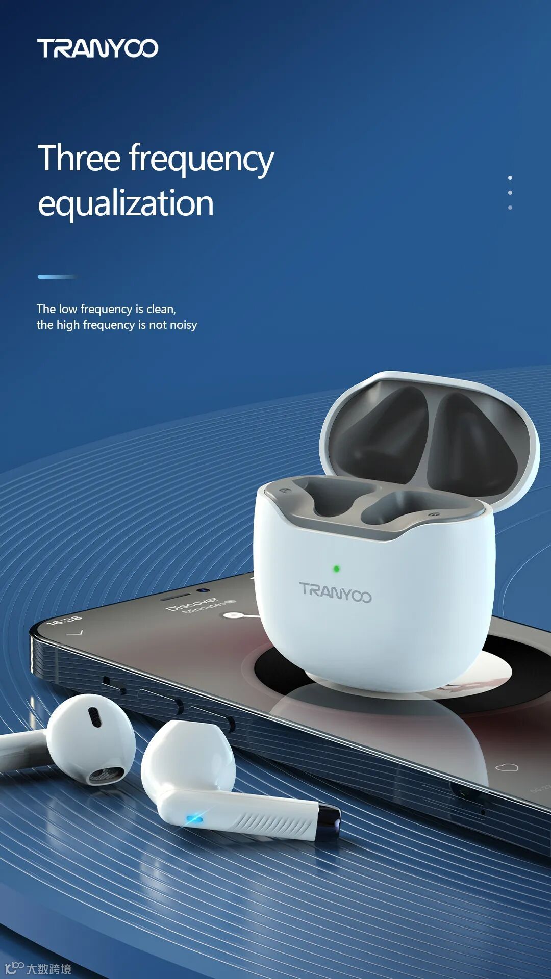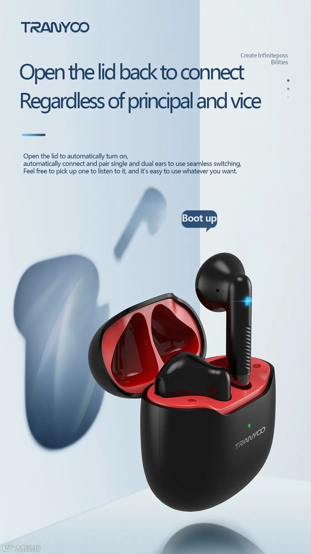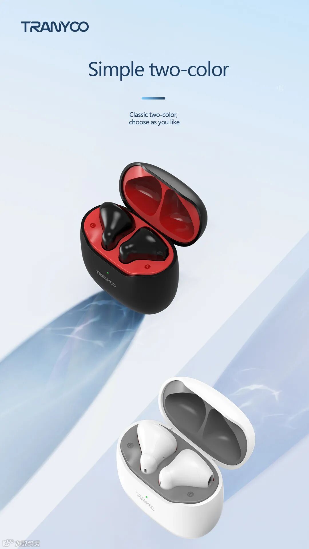 2. Bluetooth 5.1 version, low power consumption, stable and no delay, open the cover to connect back, headset switching does not distinguish between master and deputy.
