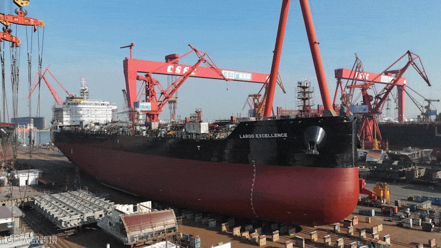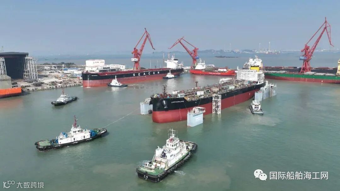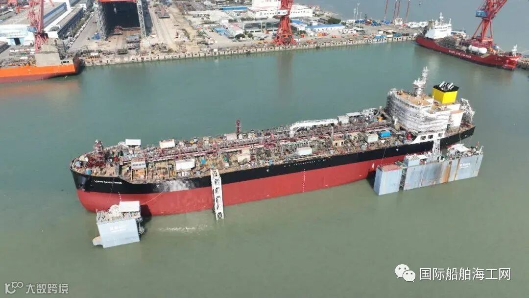 12月28日,由中国船舶集团旗下广船国际为白鲸航运公司建造的5万吨化学品/成品油船3号船缓缓从半潜驳上拉出,顺利完成平地下水。
