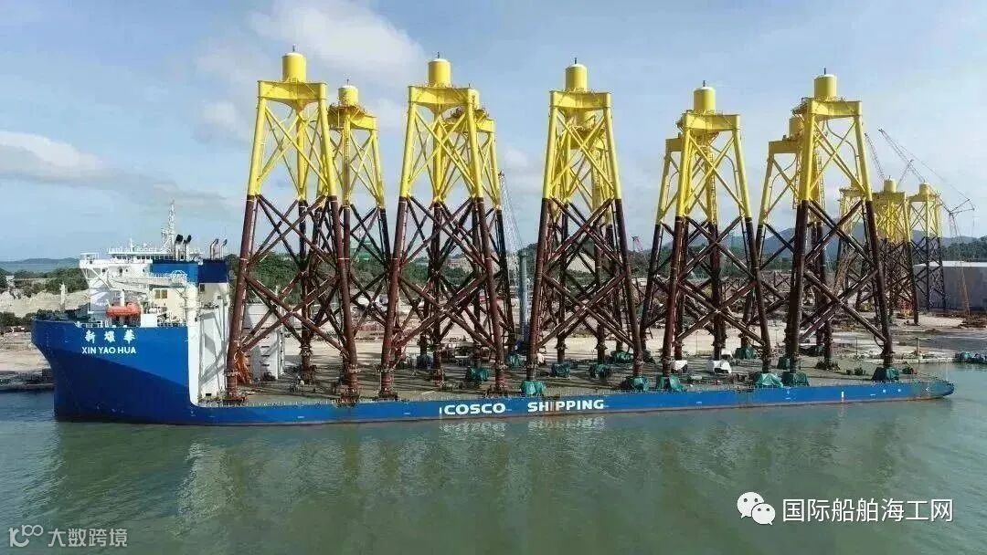 一天装5件海上风电导管架——