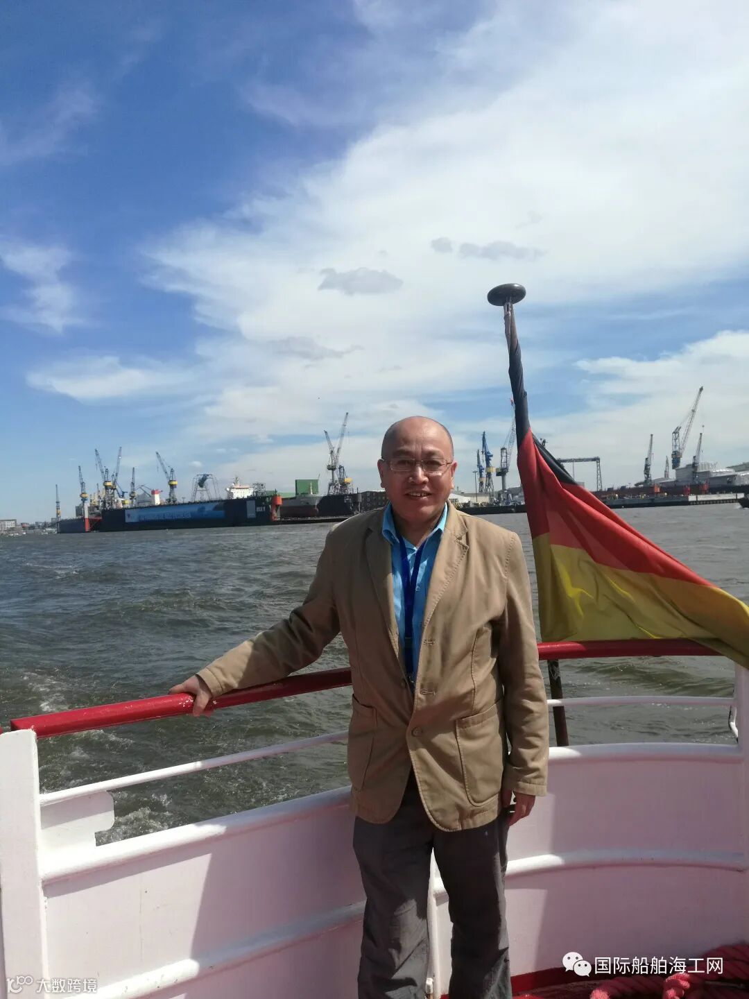 与德国船东在易北河上交流