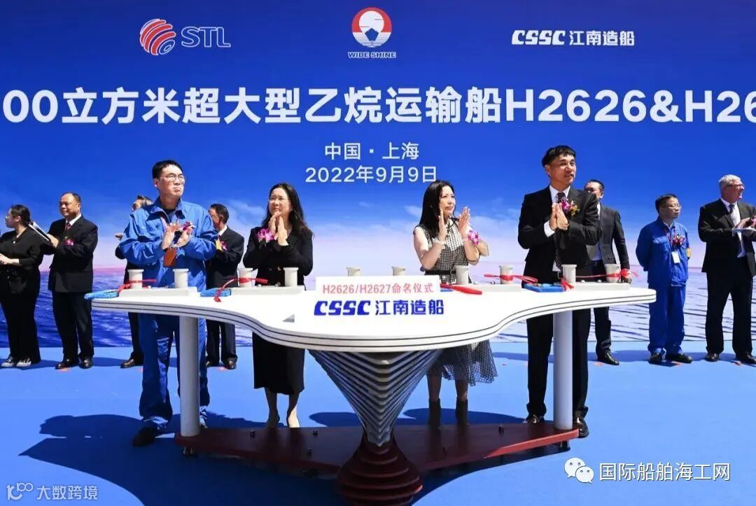 9月9日,中国船舶集团旗下江南造船为西南海运建造的两艘99000立方米超大型乙烷运输船(VLEC)、分别被命名为“GAS BLUEBONNET”(H2626船)和 “GAS MAGNOLIA” (H2627船)。