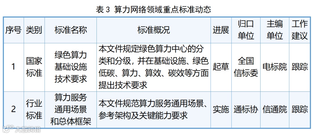 2025年8月,行业标准《算力服务通用场景和总体框架》正式实施。9月,全国信标委征集国家标准《绿色算力基础设施技术要求》参编单位。具体情况见表3。