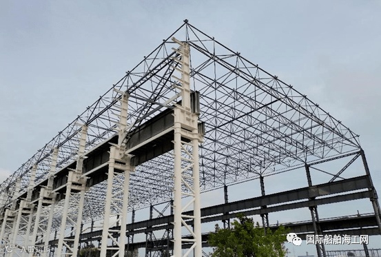 近期,该项目接连完成几个关键节点:5月16日完成所有钢柱安装,5月31日完成辅楼结构封顶,6月12日完成网架安装。