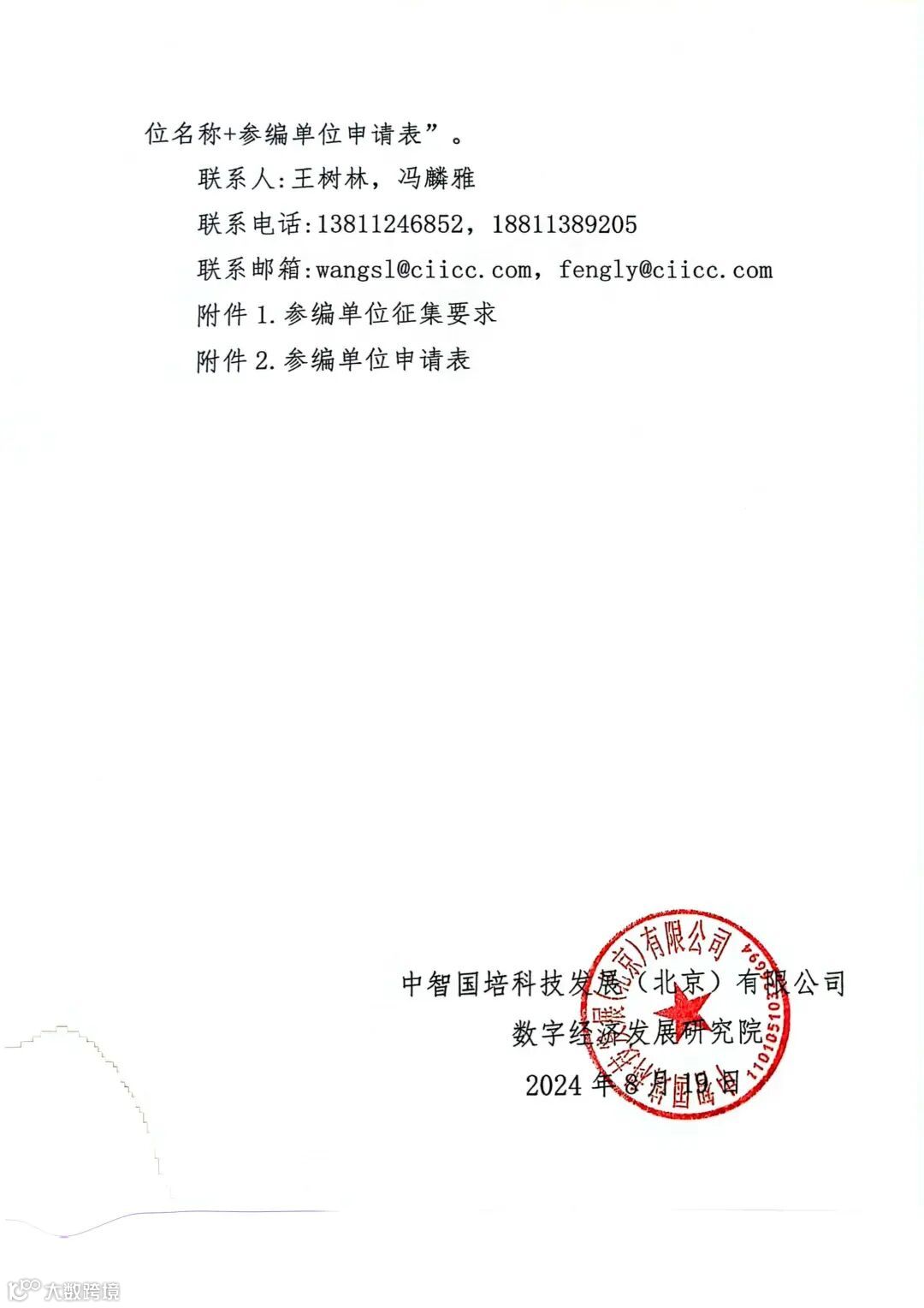 请有意向参与标准编制的单位,按照要求填写申请表,并于2024年9月6日(周五)17时前将盖章后的电子版发送至联系人邮箱,并注明“单位名称+参编单位申请表”。