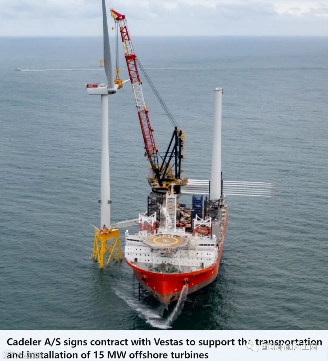 下单在中国建造3艘海上风电高端安装船的丹麦船东Cadeler近日获得了丰厚的海上风电安装合同。
