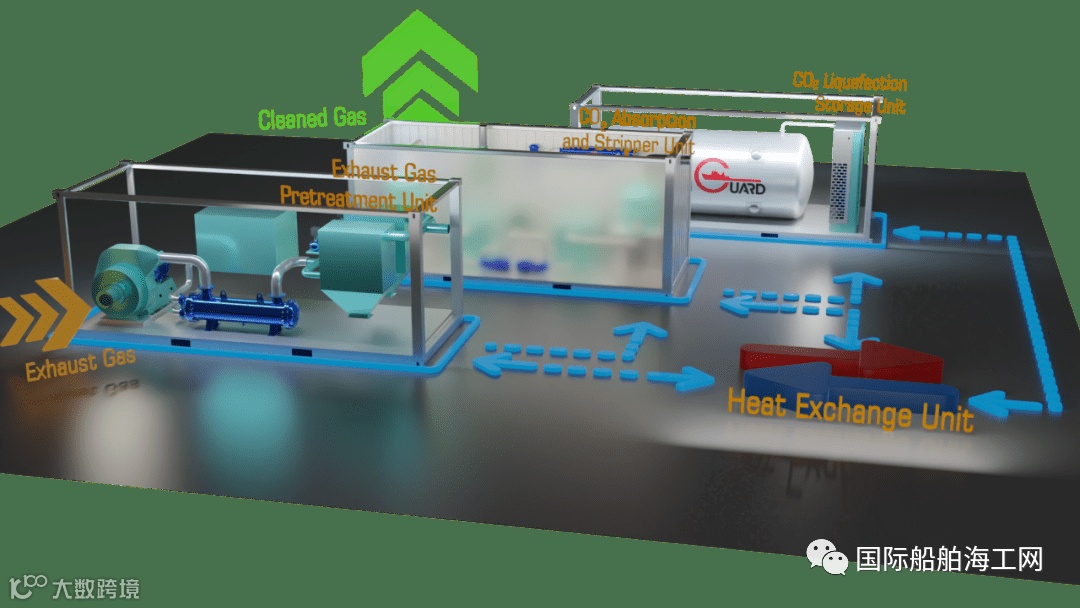 此外,该系统还能够对船舶运行时产生的废热和过剩蒸汽进行收集利用,相比传统捕集系统,可节省约40%的能耗。同时,该系统还可与海洋卫士®船舶尾气脱硫系统联合安装。可降低约25%的船舶燃料成本。