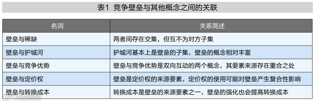 从定义的角度来看,竞争壁垒的内涵丰富,且与稀缺、护城河、竞争优势、定价权等概念间存在复合性的关联,为更好夯实竞争壁垒分析的概念基础,我们就其与相关概念间的关系进行了梳理(见表1)。