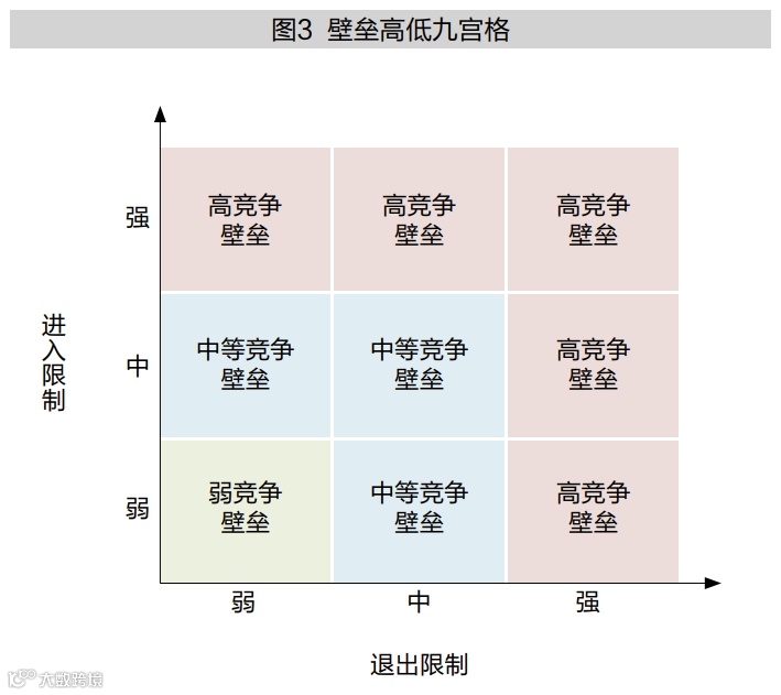 在明确具有竞争壁垒的情况下,需要进一步对壁垒的高低进行评估,以为制定实施相应的壁垒优化策略提供参考。实现有效评估的关键前提是——如何界定壁垒的高低?在位企业设置竞争壁垒的核心目标是使自身在与新进入企业或潜在竞争者的博弈中立于不败之地,维持自身原有的市场份额以及相对应的收益创造能力。该目标可从供给侧和需求侧两个维度进行拆解,即对潜在竞争者的进入限制,以及对现有用户的退出限制。对进入限制和退出限制的强度则有效反映了竞争壁垒的高低。