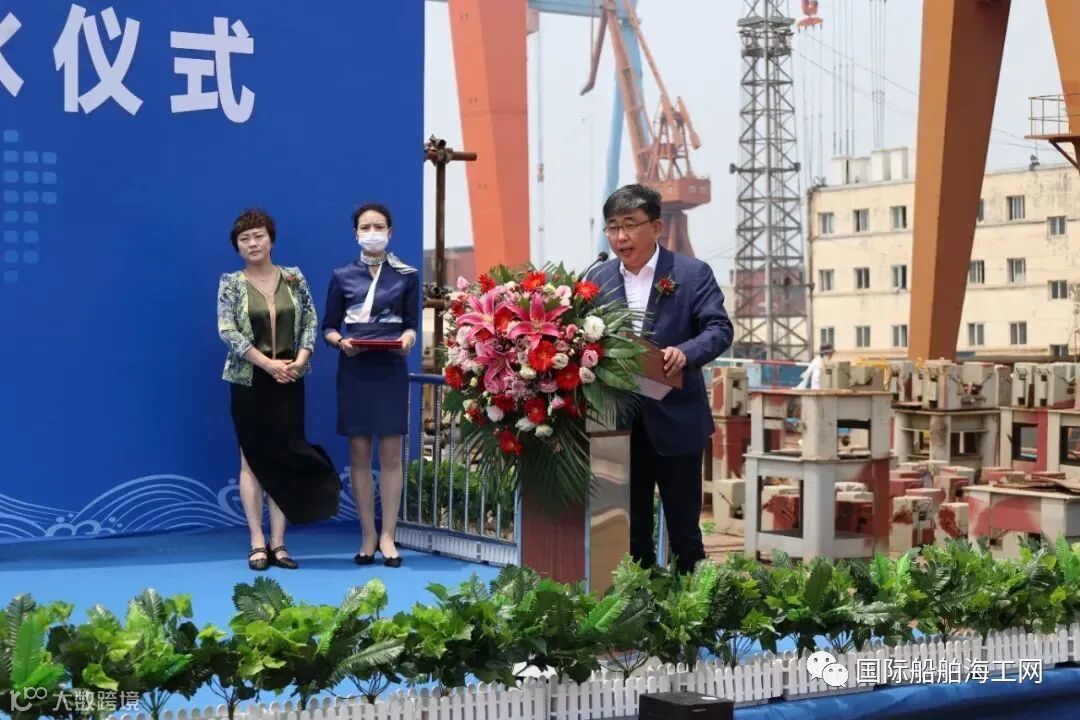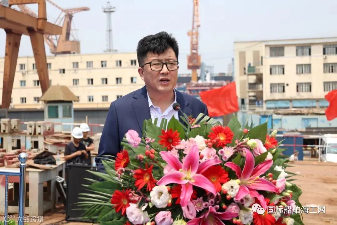 公司总经理王际好向出席仪式的各位领导表示诚挚的欢迎,并向参与船舶设计、建造、检验的各单位及广大参建者表示衷心的感谢。他强调,本次建造的甲板驳船,是公司打造“百亿航三”,深耕大连地区水工市场的重要装备保障,对公司意义重大。日后,公司将一如既往加强与大船集团、大船产业及中国船级社的交流,全面提升合作维度,携手共创美好未来。