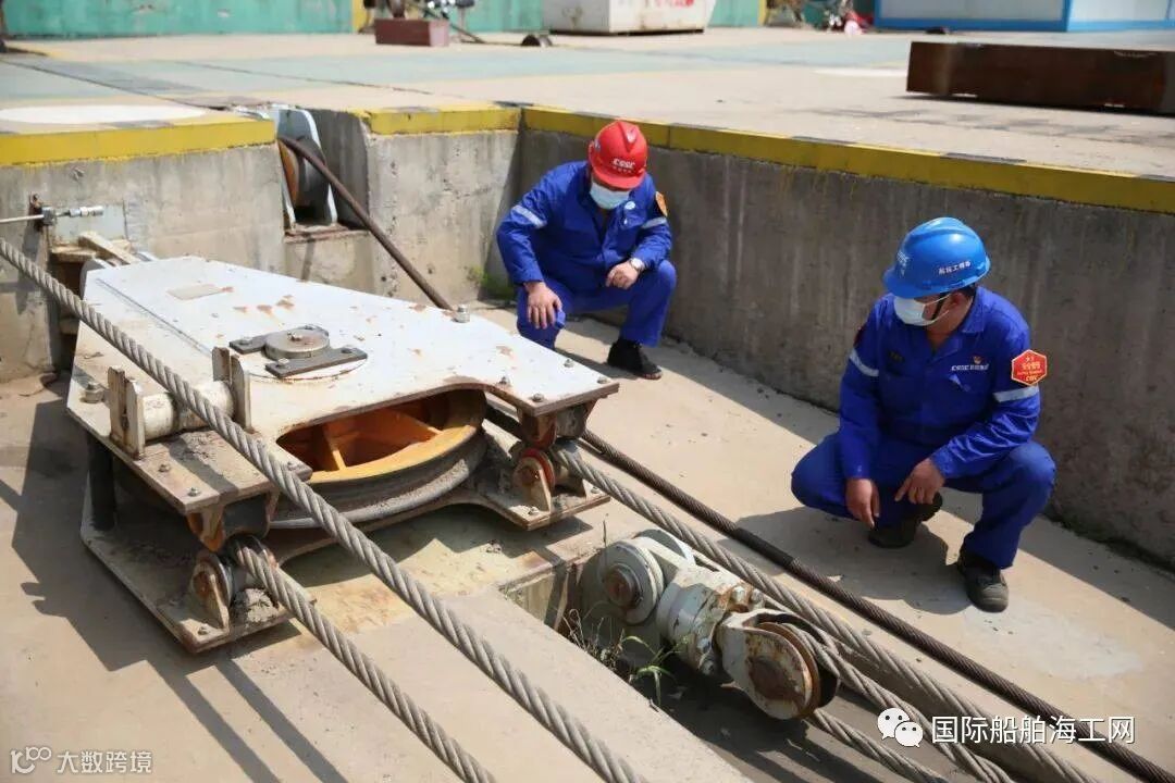 → 4月21日下午,下水前对滑道状态进行检查: